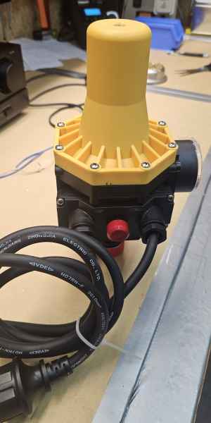 Das Hauswasserwerk regelt den Netzdruck (Zisternenwasser) auf ca.4 bar. Die Zweipunkt-Druckregelung erfolgt über einen klassischen Membrandruckschalter. Die Pumpe lief nicht mehr an obwohl der eigentliche Druckschalter korrekt arbeitete. Das Relais auf der Platine, welches die Pumpe zuschaltet war defekt. Der Schaltkontakt des Lastrelais war hochohmig (verbrannt). Nach Tausch des Lastrelais arbeitet das Hauswasserwerk wieder einwandfrei.